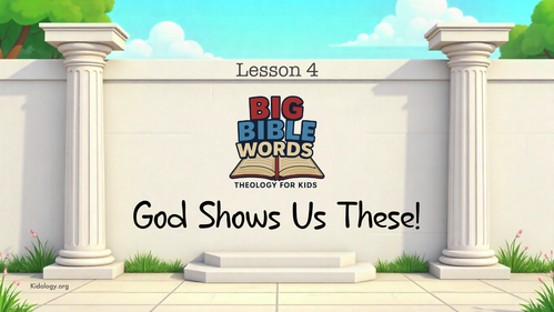 During this series, you'll be learning some BIG WORDS from the Bible. Grown-Ups call them "THEOLOGY" words - Theology simply means "Theo" (God) "ology" (the study of) so.... THEO-OLOGY is just the Study of God. During this series you'll learn some BIG WORDS, but you'll also learn there are usually some little words that mean the same thing. As Pastor Karl says, "Grown up are big, so they like Big Words, but there are little words that mean the same thing," and make learning the Big Words easier!