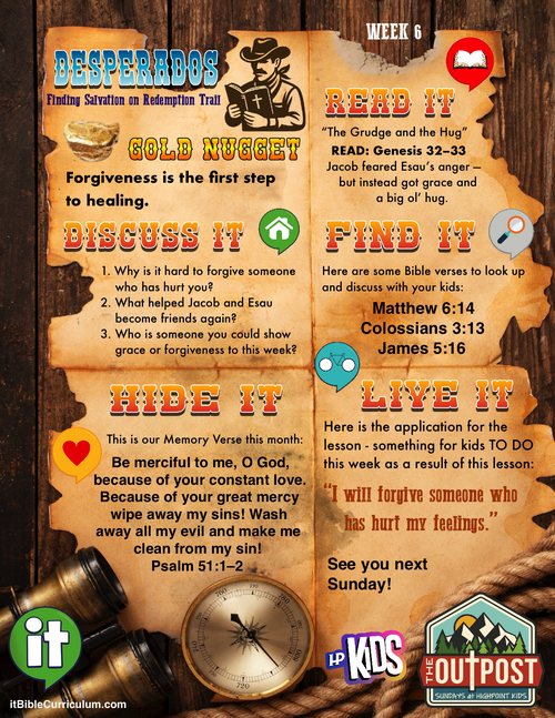 Well howdy again, buckaroos! A long time ago, two brothers had a showdown—Jacob done tricked Esau and hightailed it outta town! But years later, when their trails crossed again, instead of a shootout, there was a hug-out. This lesson teaches lil' cowpokes that forgiveness is the first step to healing—even when the past is messier than a tumbleweed in a windstorm.