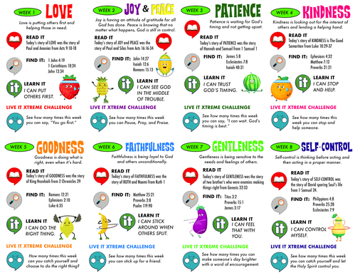 Each week, we have an Xtreme Assignment for you to APPLY the Fruit of the Spirit. To reveal your assignment, simply CLICK ON THE FRUIT!