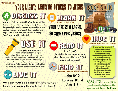 This weekly guide will give you some Scriptures to look up, family discussion questions and more so you can learn more about our Rock Solid Adventure from The Outpost this week!