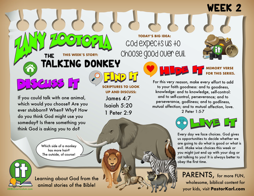 Do you have a puppet? Go get it! Do you like making puppets talk? Pastor Karl loves puppets. A puppeteer makes the puppet talk. You aren't a puppet. When you talk - it's YOU talking, no one is making you talk! You use your own words to say what you want to say! In today's Bible story, God allowed a donkey to talk! But it wasn't just a puppet. God didn't talk through a donkey, he allowed the donkey to think and talk! That's pretty amazing!
